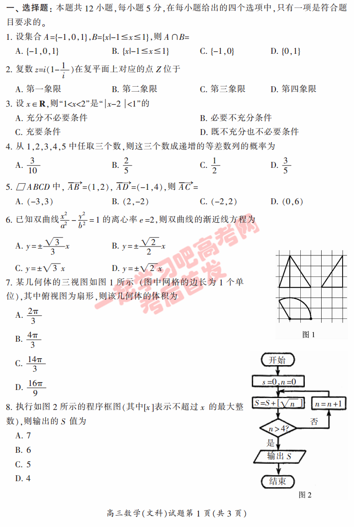 郴州市2017屆高三上學期第一次教學質量監(jiān)測文科數(shù)學試題及答案(2)